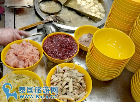 猪杂汤的材料非常丰富,有猪肝、猪肠、肉片、肉丸、豆腐、咸菜、青菜等,用新鲜食材,花足时间和耐心熬煮的猪什汤上桌,香气扑面而来,撒上胡椒粉,蘸上上好的酱油和秘制辣椒酱吃里面的料,汤不咸可以续汤,味道香甜浓郁让人回味无穷啊[色]。