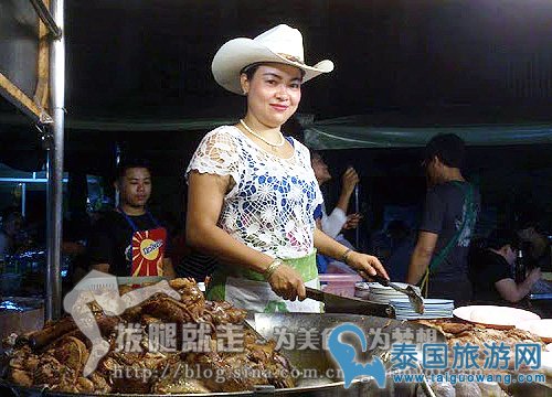 这里的凤飞飞猪脚饭伙计会说日常的中文,交流方便,老板娘的确名不虚传,虽人到中年,却也是风韵犹存,很有味道。还吃了一家猪颈肉的粉面,告诉店家不要糖,不要香料,少要辣椒,这样搭配起来虽然少了本地的重口味,却有一种清淡鲜香的味道,30泰铢,应该有3两,分量很足。这个夜市虽不大,但也是麻雀虽小五脏俱全,几乎都能找到合口味的各种美食,并且味道地道,价格低廉。值得推荐。