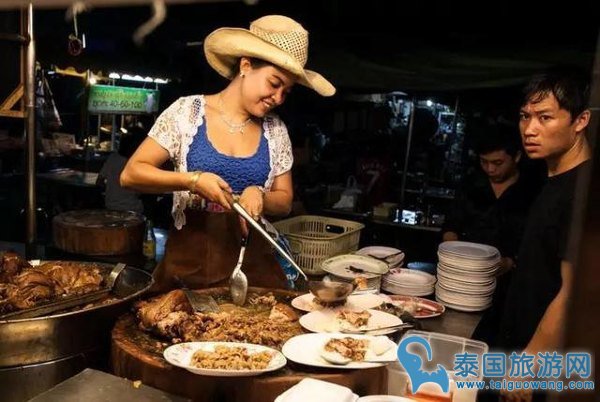 昌卜克夜市位于古城北面的昌卜克门外,夜市不大,但有一家被网友称为凤飞飞猪脚饭的小摊却永远人满为患。因为美女老板娘长得像中国台湾已故的歌手凤飞飞而得名,这家猪脚饭也被称为清迈最好吃的猪脚饭,看到夜市上人最多的那个小摊就对了。