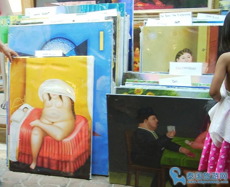 走过一个画室,摆着几幅大画象,画上都是胖乎乎的女人和男人,泰国是个以胖为美的国家,而以这么胖为美,应该全国也不会有几个美女的。给我们表演的人妖们,可能也只迎合了除泰国人外的其它国家的审美观而已,在他们看来,那可能并不是美女。他们伟大的国皇,也长得干瘦精炼,看来也不属美男之列;到是我这个曾经帅哥,在泰国依然还是帅哥的。