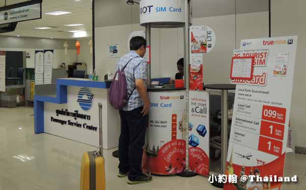 清迈目前唯一一间泰国手机SIM卡柜台,就在领行李区的尽头,旁边是洗手间。