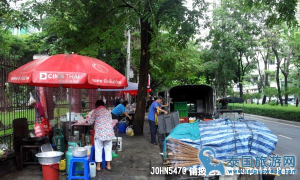这就是后面露天早餐街~有不少摊贩喔!伦披尼公园Lumphini Park里也有一尊佛像供参拜。