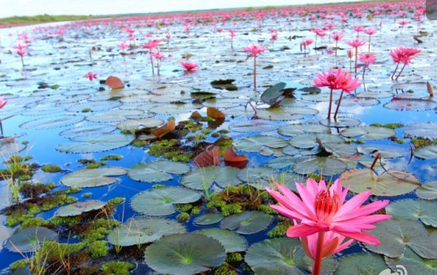春节期间,多达30万之众的中国游客来到泰国旅游,曼谷、清迈、普吉在中国游客中耳熟能详。其实在泰国东北部的乌隆他尼(乌隆府的首府)有一片“红莲之海”,被誉为世界十五大奇观之一。