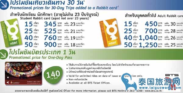 2.购买次数套餐:成人买黄色免免卡,搭15次BTS捷运,450元泰铢,一次30元。(2016年)