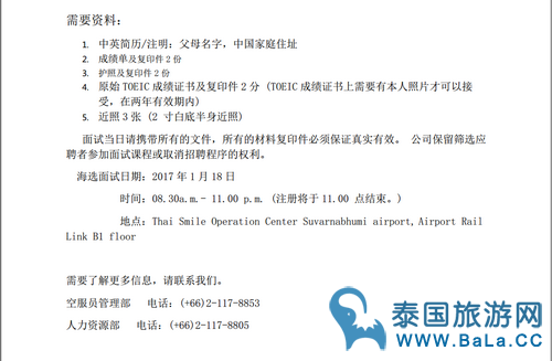 第一轮海选时间就在半个月后-2017年1月18日08:30-17:30,註册登记截止时间为当天上午11:00。面试地点在泰国微笑航空素汪那普国际机场培训中心。