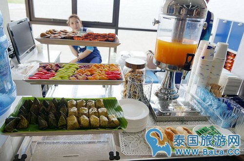 曼谷航空在曼谷、苏美岛、素可泰都有专属的lounge area让乘客休息,这个机场比较小,没有独立的lounge area,但还是有免费的咖啡、冷饮和点心让旅客享用。