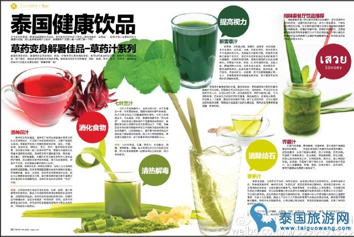 天气炎热的泰国,解渴饮品是随处可见的,形形色色的饮料成了很多人用来消暑的“必需品”,但很少有人注意到饮料与健康的问题,那么夏季解渴喝草药汁最好、最健康不过的啦。 泰国草药水消暑又解热,对身体也很有益处