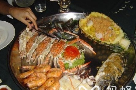 性价是真不错哦!我们点的2~3人的套餐包括:海鲜拼盘、菠萝炒饭、水果本来按照国内什么“海鲜拼盘”就是意思一下 一样来点儿....结果这里的海鲜拼盘端上来 直接占了两个桌子!