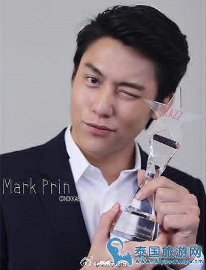 最近新闻里Mark可谓是爱情事业双丰收啊,与Kim甜蜜得羡煞旁人,工作上:他前天参加了Kazz颁奖礼,获奖了,年度最受欢迎人气奖哟,然后最近一直都在拍摄泰剧《人生波动》。附图为剧照花絮和颁奖礼现场,马克越来越成熟了。