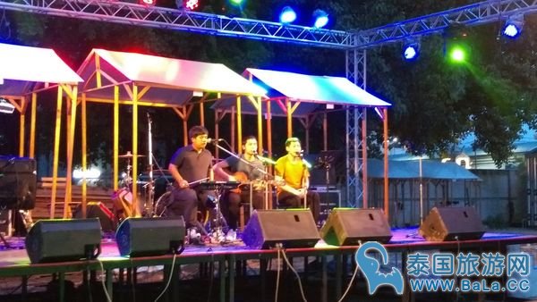 许多泰国人喜欢坐在这边吃点东西再喝点小酒,耳边传来的就是现场乐团炒热气氛的热门歌曲,如果气氛够high,现场的观众还会跟着一起合唱,这种慵懒随兴又轻鬆自在的气氛,果然就是Art Box最迷人的地方了!!!!