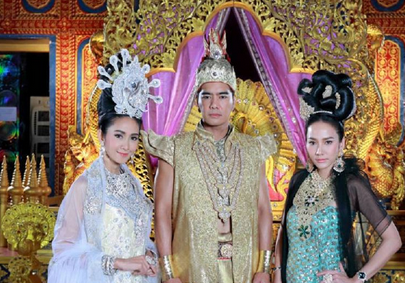 Aump这次出演了王后Anundthip一角,极致优雅,从头到脚无一不美,服装、造型,每一个细节都力求兼顾。电视剧祭祀仪式上的Aump就可以说美得令人惊异,造型无比华丽。